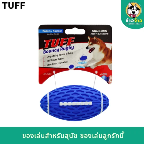 TUFF Bouncy Rugby ของเล่นสุนัข ของเล่นลูกรักบี้ บีบมีเสียง สำหรับสุนัขพันธุ์กลาง-ใหญ่