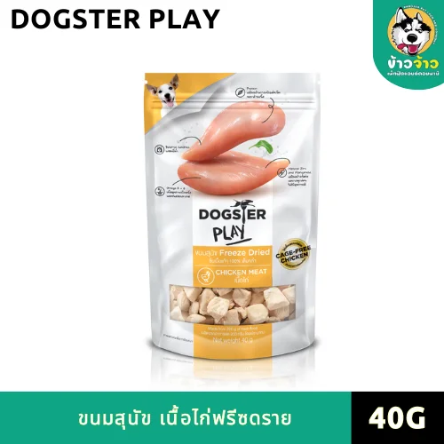 Dogster Play ขนมและท้อปปิ้งฟรีซดราย สำหรับสุนัข สูตรเนื้อไก่ 40G.
