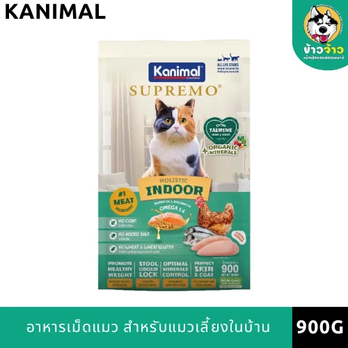 Kanimal Supremo – INDOOR คานิมอล อาหารเม็ดแมว เกรดพรีเมียม สูตรสำหรับแมวเลี้ยงในบ้าน ขนาด 900 g.