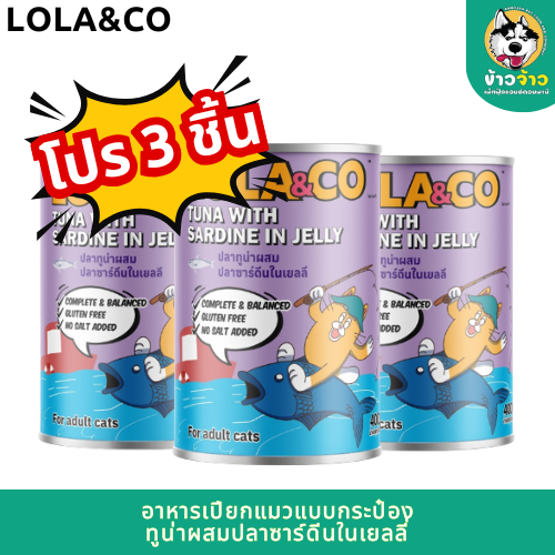 Lola&Co อาหารเปียกแมว แบบกระป๋อง ทูน่าผสมปลาซาร์ดีนในเยลลี่ 400g