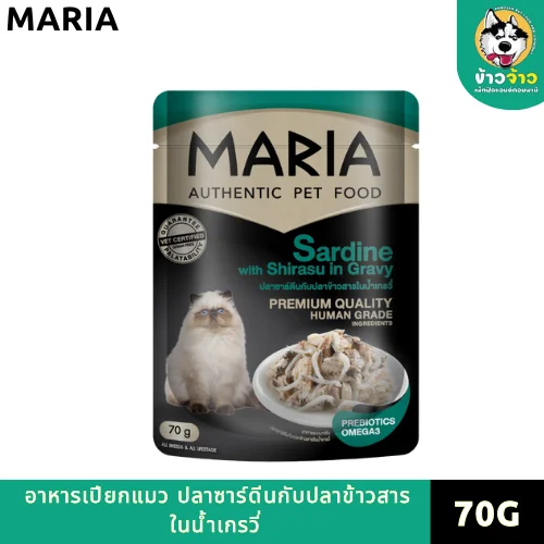 มาเรีย Maria Premium Cat Pouch อาหารเปียกแมว ปลาซาร์ดีนกับปลาข้าวสารในน้ำเกรวี่ 70 G