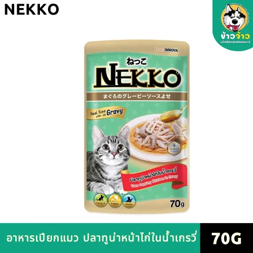 Nekko เน็กโกะ อาหารเปียกแมว ปลาทูน่าหน้าไก่ในน้ำเกรวี่ สำหรับแมวโต 70G.