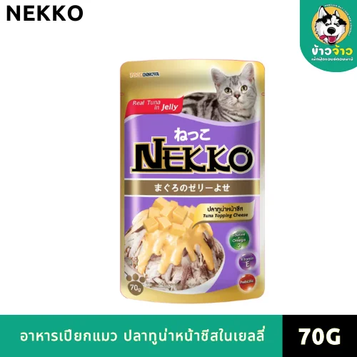 Nekko เน็กโกะ อาหารเปียกแมว รสปลาทูน่าหน้าชีสในเยลลี่ สำหรับแมวโต 70G.