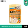 Nekko เน็กโกะ อาหารเปียกแมว รสปลาทูน่าหน้าปลาโออบแห้งในเยลลี่ สำหรับแมวโต 70G.