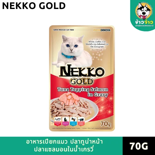 Nekko Gold เน็กโกะ อาหารเปียกแมว ปลาทูน่าเนื้อขาว รสปลาทูน่าหน้าปลาแซลมอนในน้ำเกรวี่ 70G.