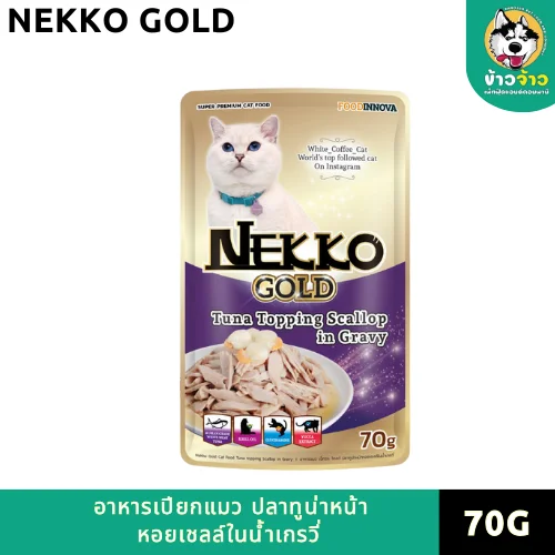 Nekko Gold เน็กโกะ อาหารเปียกแมว ปลาทูน่าเนื้อขาว รสปลาทูน่าหน้าหอยเชลล์ในน้ำเกรวี่ 70G.