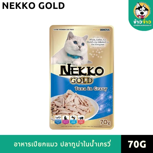 Nekko Gold เน็กโกะ อาหารเปียกแมว ปลาทูน่าเนื้อขาว รสปลาทูน่าในน้ำเกรวี่ 70G.