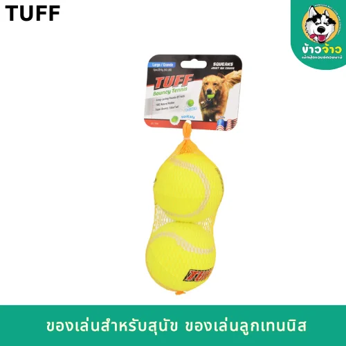 TUFF Dog Toys คุณภาพเยี่ยมคุณภาพอเมริกา ให้สุนัขเพลิดเพลินกับการเล่น ลูกเทนนิสมีความยืดหยุ่นสูง และมีเสียงเมื่อบีบเพื่อกระตุ้นการเรียนรู้ ทนทานต่อการกับแทะ
