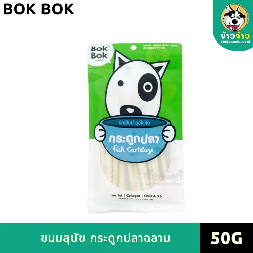 Bok Bok ขนมสุนัข กระดูกปลา ขนาด 50 กรัม เป็นขนมสุนัขที่มีส่วนประกอบของกระดูกปลา