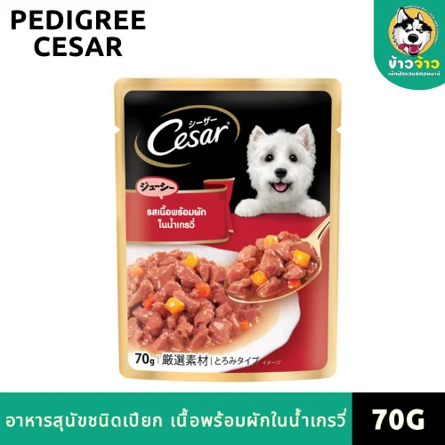 ซีซาร์ อาหารสุนัข ชนิดเปียก แบบเพาช์ รสเนื้อพร้อมผักในน้ำเกรวี่ 70 กรัม