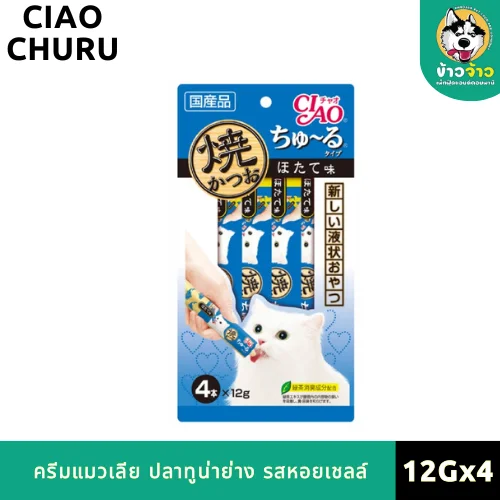 CIAO เชาว์ ชูหรุ ครีมแมวเลีย ปลาทูน่าย่าง รสหอยเชลล์ 12gx4