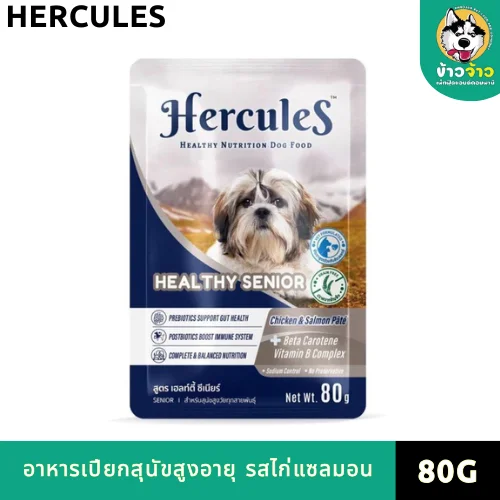 Hercules Healthy Dog Pouch Healthy Senior เฮอร์คิวลิส อาหารเปียกสุนัข แบบซอง รสไก่&แซลมอนพาเต้ 80 G