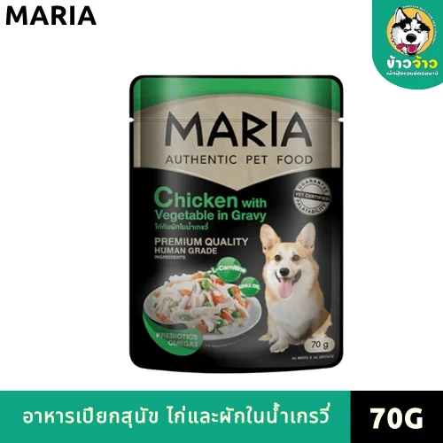 Maria Premium Dog Pouch (มาเรีย อาหารเปียกสุนัข ไก่และผักในเกรวี่) เป็นอาหารเปียกสุนัขเกรดพรีเมียม ที่คัดสรรวัตถุดิบคุณภาพเพื่อสุนัข