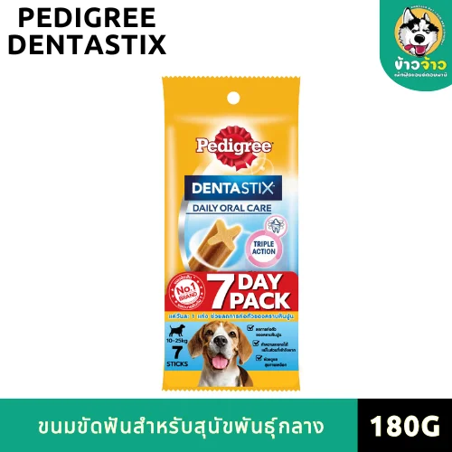 Pedigree เพดดีกรี เดนต้าสติ๊ก ขนมขัดฟัน สุนัขกลาง 7 ชิ้น 180g