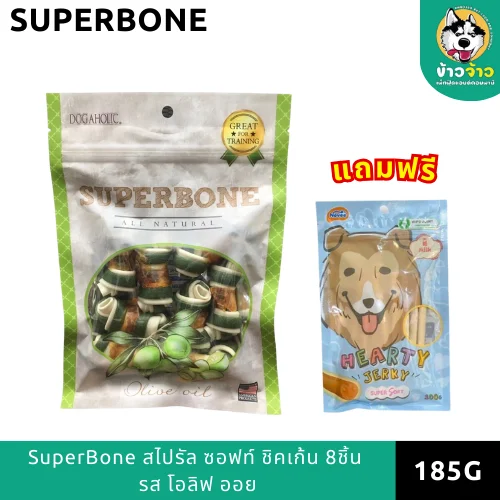 SuperBone – สไปรัล ซอฟท์ ชิคเก้น 8ชิ้น รส Olive oil ขนาด 185g. (แถมฟรี HEARTY JERKY รสนม 20g.)