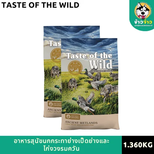 Taste of the wild Dog Ancient Grains Wetlands เทสต์ ออฟ เดอะ ไวลด์ อาหารสุนัขนกกระทาย่างเป็ดย่างและไก่งวงรมควัน 680Gx2
